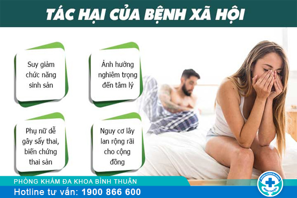 ✘ Gây vô sinh: Bệnh xã hội thường xảy ra trực tiếp và gây hại cho cơ quan sinh sản tiên nên nếu không thăm khám và điều trị sớm, cả nam và nữ giới đều có thể mất đi khả năng sinh con.