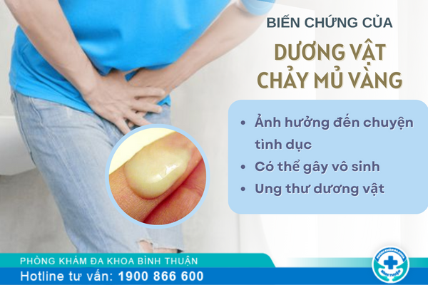 Dương vật ra mủ vàng ở nam giới là vô cùng nguy hiểm, bệnh không chỉ đem lại sự bất tiện và khó khăn trong đời sống mà còn tiềm ẩn nhiều mối nguy hiểm khác, trong đó phải kể đến như: