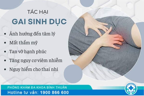 Phụ nữ mang thai bị gai sinh dục sẽ ảnh hưởng đến sự phát triển của đứa bé trong bụng, một số trường hợp dẫn tới sanh non, thai ngoài tử cung, sanh khó,…