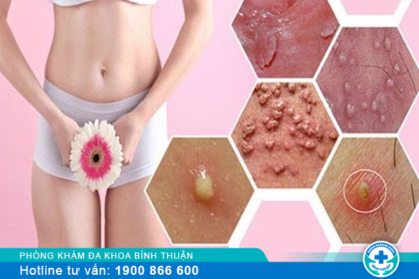 + Mụn rộp: Thường là do mụn rộp sinh dục với các nốt mụn đầu trắng kèm theo ngứa rát, sau 1 thời gian các mụn sẽ vỡ ra và gây lở loét, nhiễm trùng vùng kín.