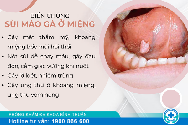 Sùi mào gà ở miệng nếu không được phát hiện sớm và hỗ trợ điều trị kịp thời có thể gây những biến chứng nguy hiểm như sau: